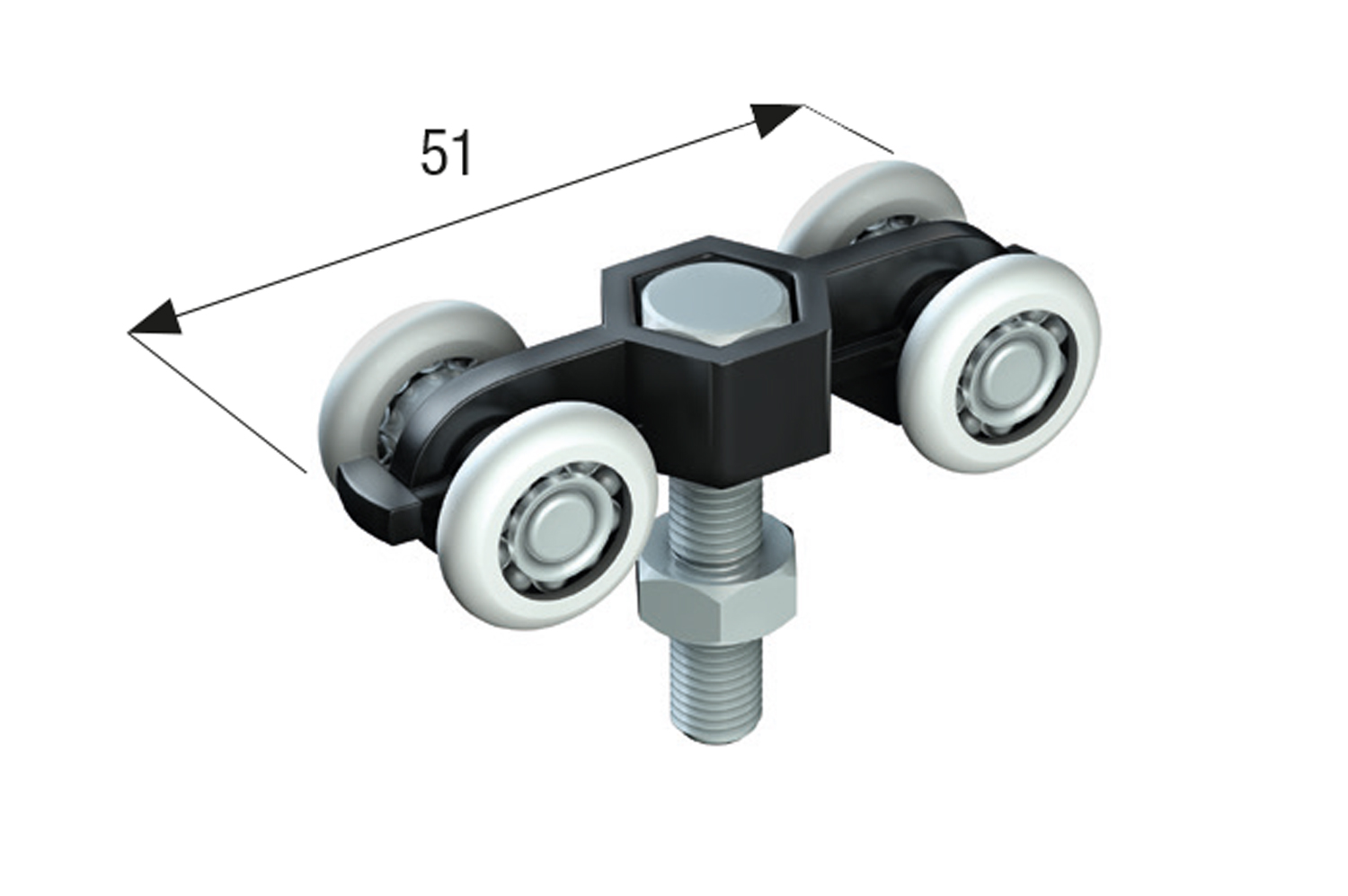 NYLON ADJUSTABLE ROLLER WITH M6 PIN AND Ø MM 15 NYLON WHEELS.