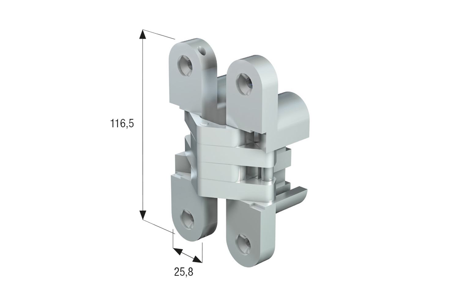INVISIBLE HINGE MM 116,5 X 25,8 MADE OF STEEL AND ZINC ALLOY.